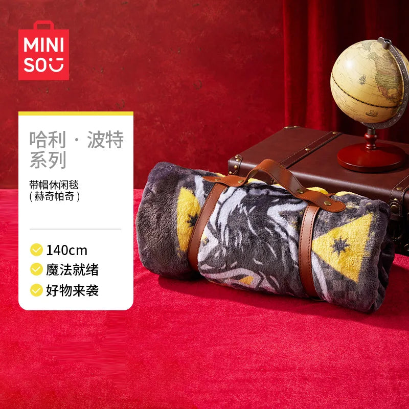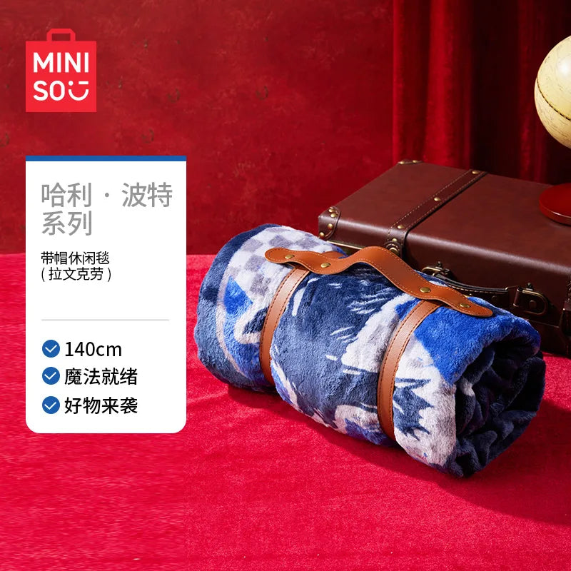 MINISO Kawaii Harry Potter Series Printed Hooded Throw – Cute Girly Blanket with Hoodie for Autumn & Winter
